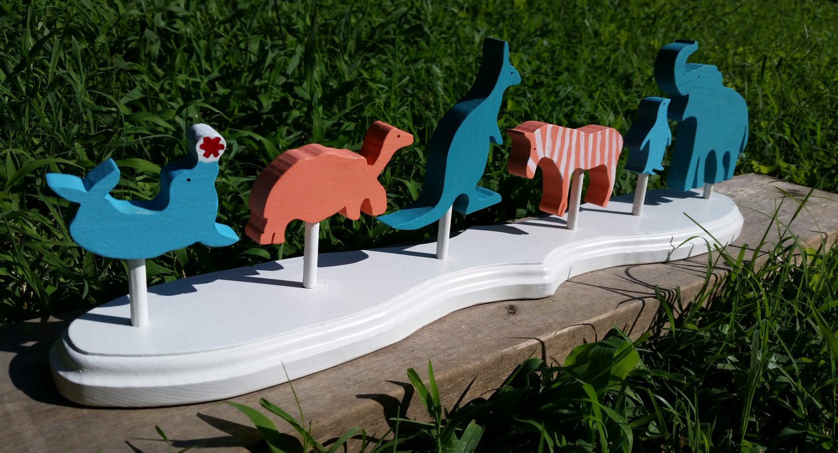What child doesn’t love to see his/her name carefully hand-painted onto adorable zoo animals? What makes this sign super cool, is that each animal easily comes off it’s post to go on adventures with it’s owner! After a hard day of imagination, the animals can then return to their perspective home posts for safe storage and display.