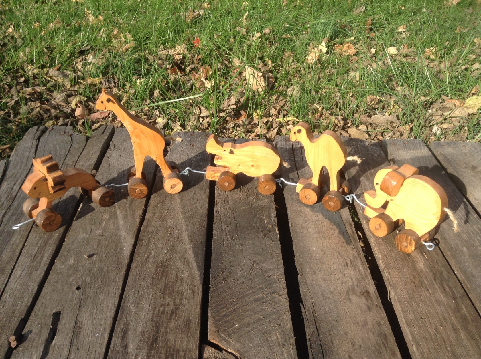 Isn’t this precious little animal train sweet enough to make your teeth hurt?  Each animal is hand cut and painstakingly sanded before being laid out to stain in the two contrasting tones and then undergoing multiple applications of shellac. Each piece is detailed and ready to become part of your family for generations to come.